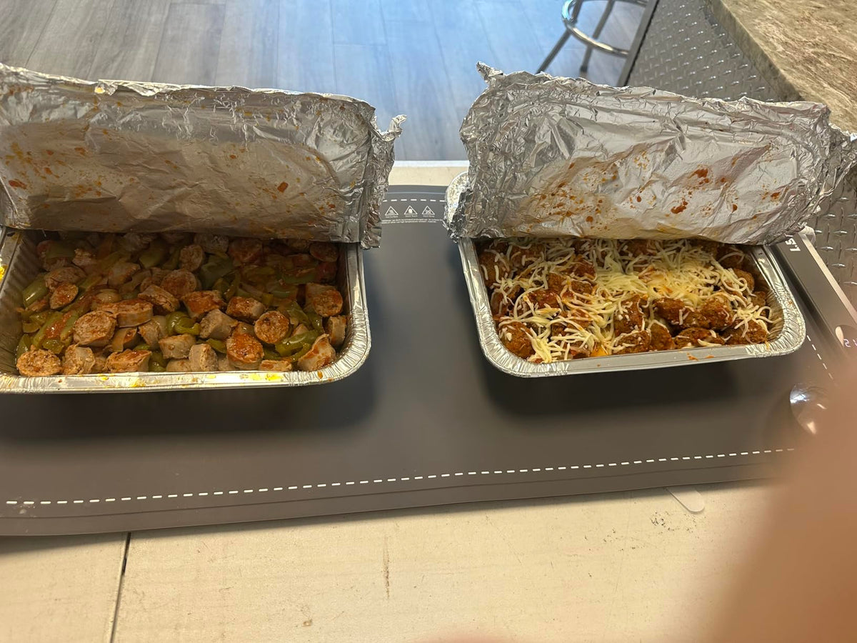 Our warming mat keeps food perfectly warm and fresh for hours—without drying it out or overcooking like an oven does.
